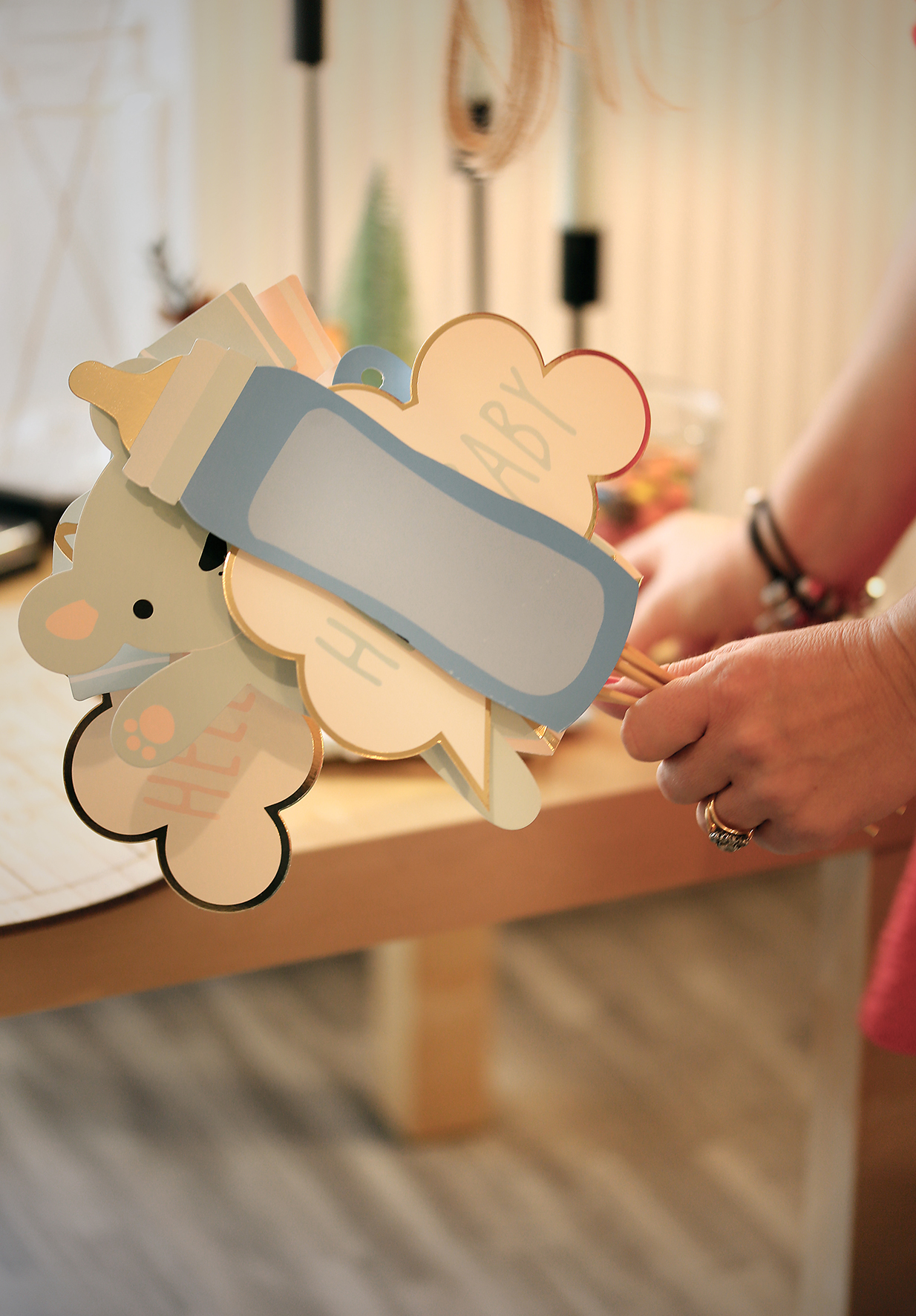 Votre organisatrice vous conseille de prévoir des accessoires autour du bébé pour le photobooth, bavoir, tétine, biberon, …