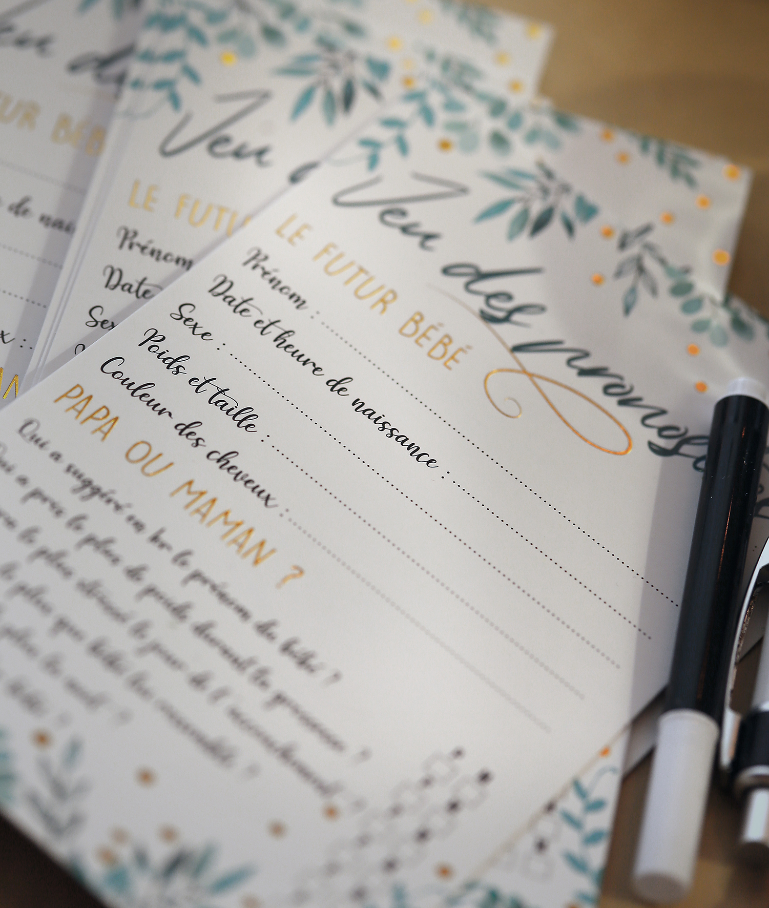 Votre organisatrice parle de divers sondage car il est possible de faire des sondage sur plein de chose. Tout d’abord le plus simple le prénom. Si vous avez réussi à ne pas lâcher le morceau, les réponses peuvent être surprenantes. Ensuite il est possible de demander à vos convives de prédire le poids et la taille à la naissance de votre enfant. Dans le même style, on peut demander de prédire la date de naissance. Attendez-vous à devoir offrir une coupe au(x) vainqueur(s).
