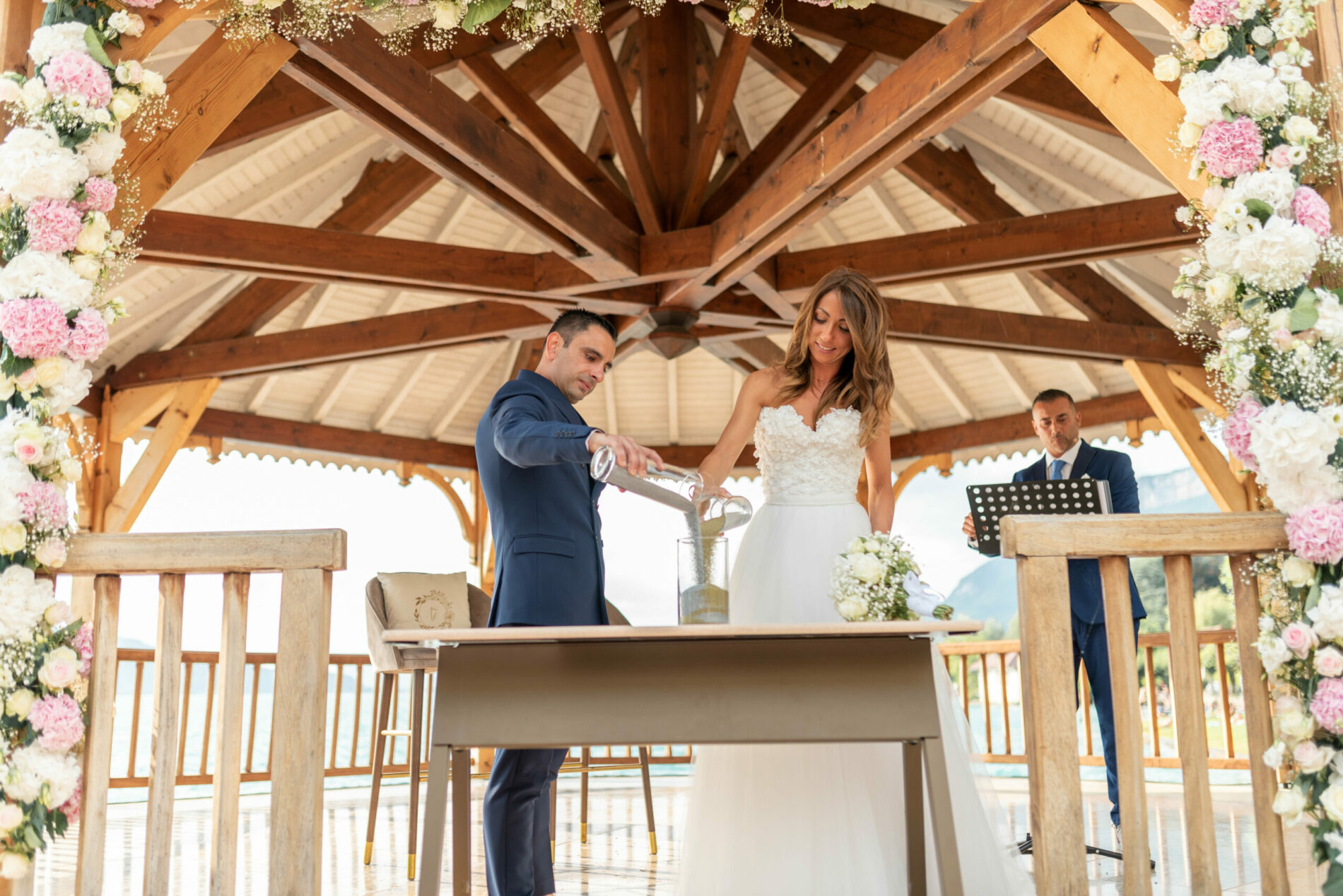 D Day wedding planner Hérault vous recommande le rituel de la rose qui est empreint de romantisme ! Suite à l’échange des vœux, les époux se donneront mutuellement une rose, symbolisant ainsi leur premier cadeau en tant que mari et femme. Ils déposeront ensuite ces roses dans un élégant vase. Cette cérémonie peut être renouvelée chaque année, à l’occasion de leur anniversaire de mariage, ajoutant ainsi une touche de continuité et de tendresse à leur union.