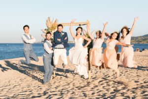 Optez pour des éléments de décoration qui complètent l’environnement, comme des lanternes, des fleurs, ou des drapées légers. De plus, assurez – vous que la musique et le son soient correctement gérés. En effet, le bruit des vagues et du vent peut rendre difficile l’audition des discours et des vœux. N’hésitez pas à jouer avec ces différents bruits comme musique naturelle en fond de cérémonie.