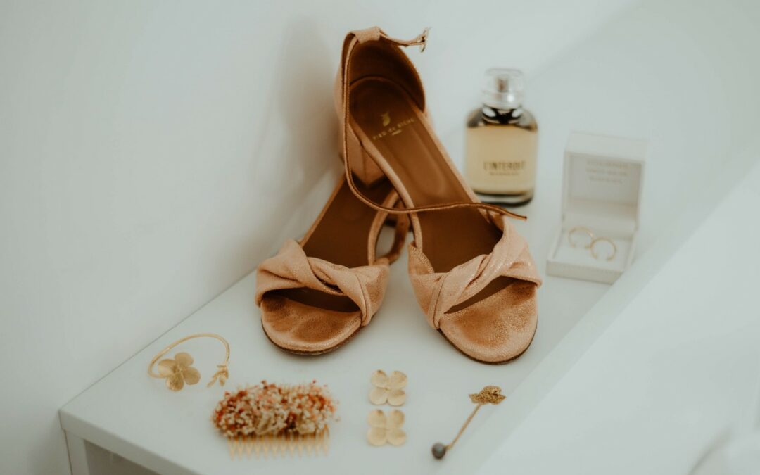 Je conseille souvent à mes mariées de préparer la pièce la veille : faire de la place sur une table pour les produits de beauté, suspendre la robe sur un joli cintre, disposer les accessoires — chaussures, bijoux, papeterie, alliances — sur un petit coin propre et ordonné. Ces détails créent une ambiance soignée et facilitent le travail des prestataires.